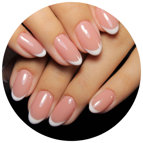 Fortalecimento das unhas naturais com aspecto delicado, ideal para unhas fracas e quebradiças.